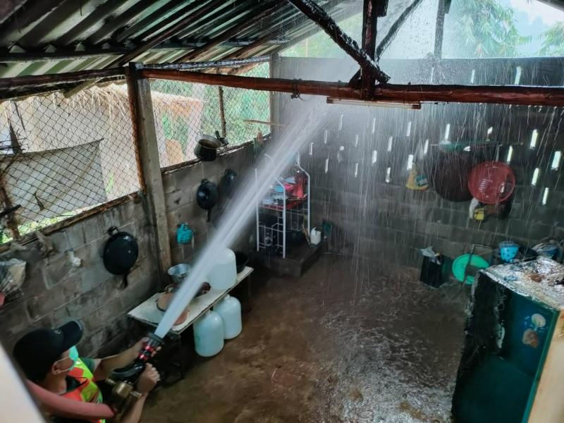ทีมงานป้องกันและบรรเทาสาธารณภัยออกเหตุดับเพลิงไหม้ห้องครัว
