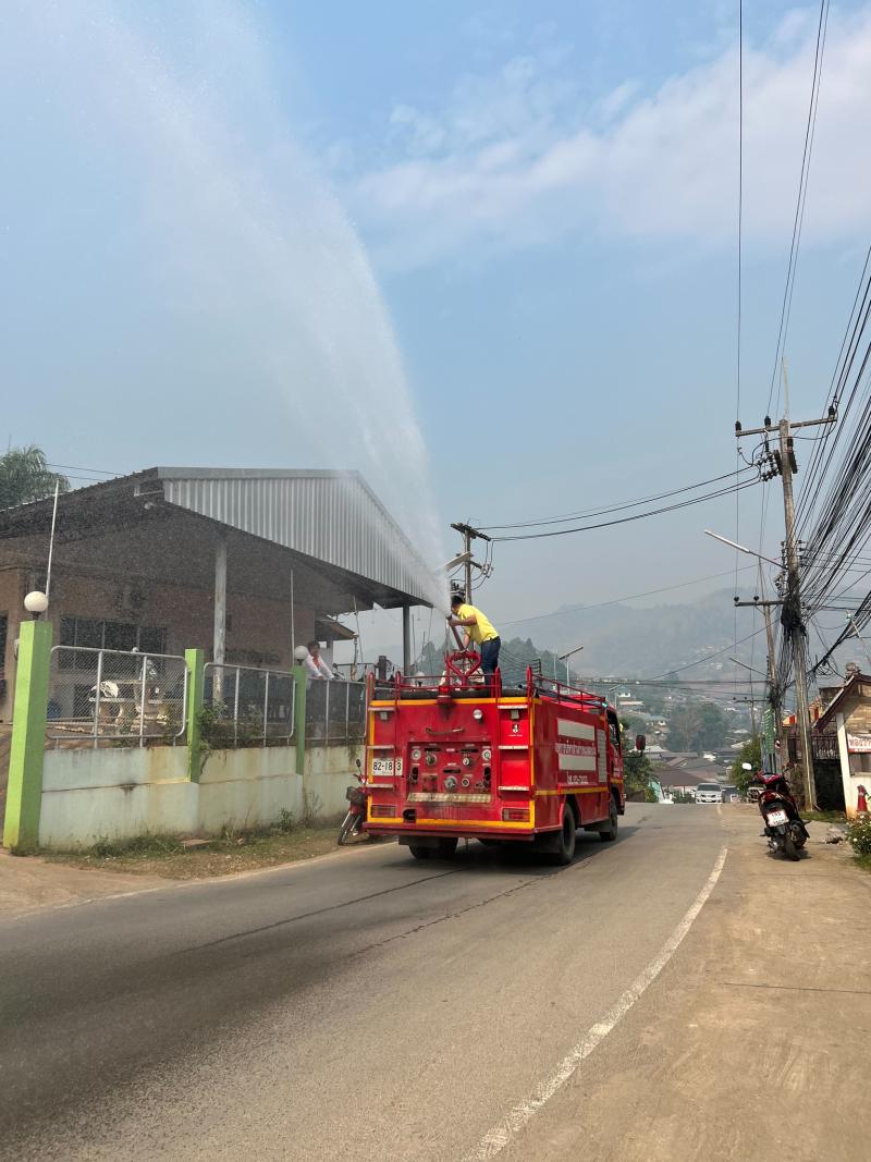 ทีมงานป้องกันและบรรเทาสาธารณภัยออกพ่นน้ำเพื่อลดฝุ่นpm2.5