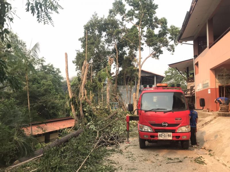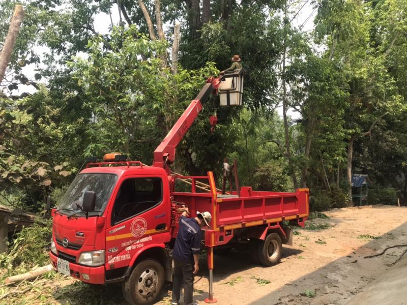 โรงเรียนบ้านห้วยผึ้งขอความอนุเคราะห์รถกระเช้าพร้อมบุคลากรในการตัดแต่งกิ่งไม้