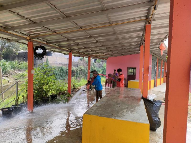 ทีมงานป้องกันออกบริการล้างทำความสะอาดตลาดประชารัฐบ้านหินแตก