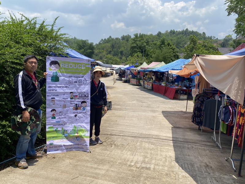 ฝ่ายบริหารงานสาธารณสุข สำนักปลัด องค์การบริหารส่วนตำบลแม่สลองใน ประชาสัมพันธ์การลดใช้โฟม ถุงพลาสติก เพื่อเป็นมิตรต่อสิ่งแวดล้อม รณรงค์การใช้ถุงผ้า ณ ตลาดนัด รัตติกาญจนารีสอร์ท