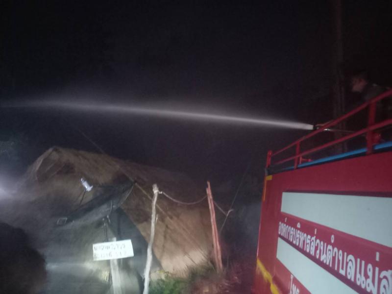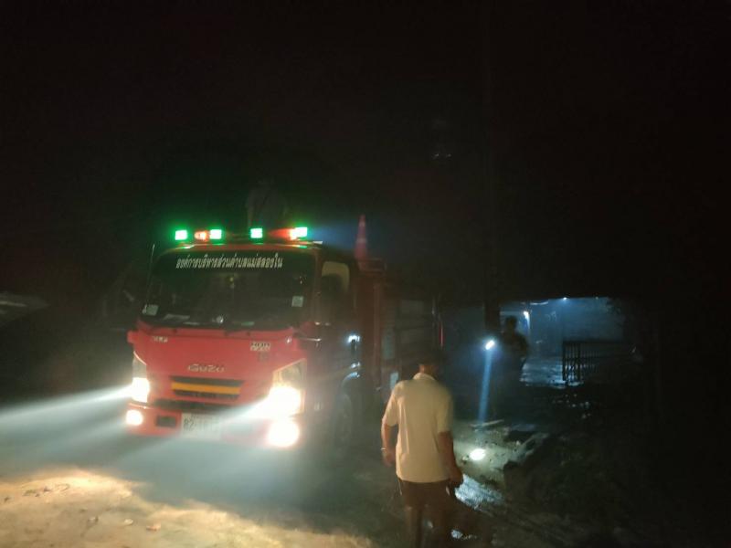 ทีมงานป้องกันและบรรเทาสาธารณภัยออกเหตุควบคุมไฟไหม้บ้านพะน้อย