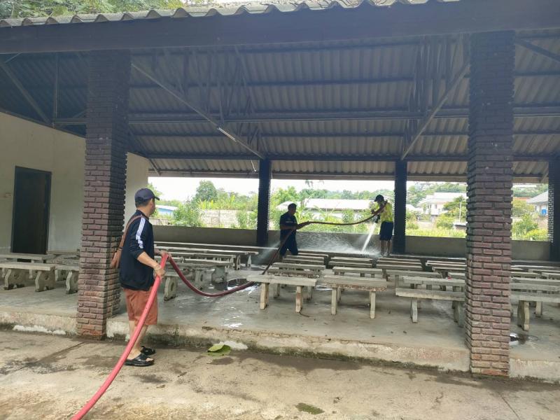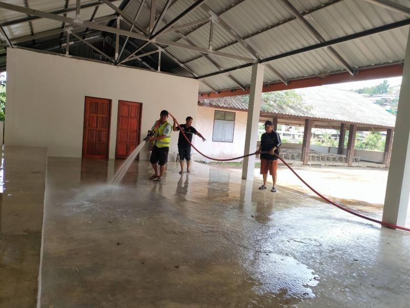 ทีมงานป้องกันออกบริการล้างทำความสะอาดศาลาป่าช้าบ้านหินแตก