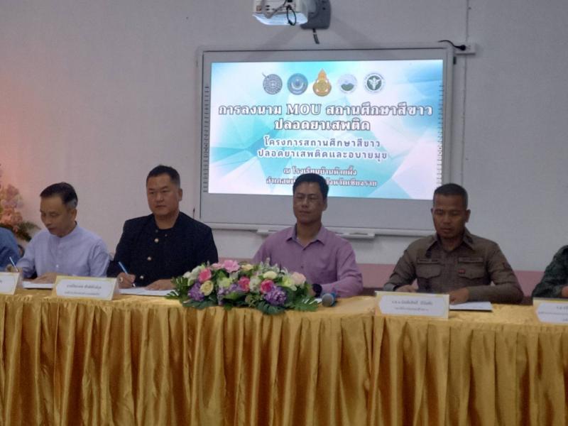 วันที่ 4 กรกฎาคม 2566 เวลา 10.00 น. นายปิยะเดช เชิงพิทักษ์กุล นายกองค์การบริหารส่วนตำบลแม่สลองใน ร่วมโครงการสถานศึกษาสีขาว ปลอดยาเสพติดและอบายมุข ระหว่าง โรงเรียนบ้านห้วยผึ้ง กับ สถานีตำรวจภูธรแม่ฟ้าหลวง , ศูนย์อำนวยการประสานงานโครงการพัฒนาเพื่อความมั่นคงพื้นที่แม่ฟ้าหลวง -แม่จัน , โรงพยาบาลส่งเสริมสุขภาพตำบลบ้านเทอดไทย, องค์การบริหารส่วนตำบลแม่สลองใน, โรงเรียนบ้านมนตรีวิทยา, โรงเรียนบ้านเทอดไทย, โรงเรียน ตชด.เจ้าพ่อหลวงอุปถัมภ์ 3 และตัวแทนผู้ปกครอง ณ โรงเรียนบ้านห้วยผึ้ง อำเภอแม่ฟ้าหลวง จังหวัดเชียงราย