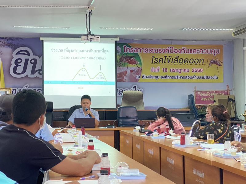 วันที่ 18 กรกฎาคม 2566 ฝ่ายบริหารงานสาธารณสุของค์การบริหารส่วนตำบลแม่สลองใน ดำเนินการจัดทำโครงการรณรงค์ป้องกันและควบคุมไข้เลือดออกร่วมกับเจ้าหน้าที่โรงพยาบาลแม่ฟ้าหลวง อสม.บ้านหินแตก (หมู่ที่ 1 ) และบ้านหินคำ (หมู่ที่ 27 ) โดยมีการจัดกิจกรรมดังนี้ .....(ช่วงเช้า) อบรมให้ความรู้ ณ ห้องประชุมองค์การบริหารส่วนตำบลแม่สลองใน .....(ช่วงบ่าย) สำรวจลูกน้ำยุงลายและพ่น ULV บ้านผู้ป่วย ในรัศมี 100 เมตร หมู่ที่ 1 หมู่ที่ 27