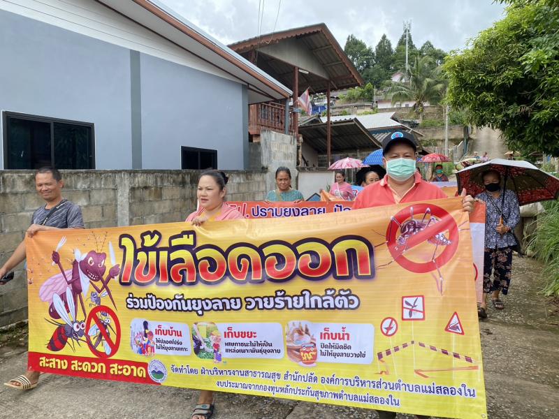 วันที่ 23 สิงหาคม 2566 นำโดยนายสมชาย ดวงติ๊บ รองนายกองค์การบริหารส่วนตำบลแม่สลองใน พร้อมด้วยเจ้าหน้าที่ฝ่ายบริหารงาสาธารณสุข ร่วมกับเจ้าหน้าที่งานป้องกันและบรรเทาสาธารณภัย จัดอบรมโครงการรณรงค์ป้องกันและแก้ไขปัญหาโรคไข้เลือดออก ณ บ้านหินแตก หมู่ที่ 1 สนับสนุนทรายเคมีฟอสกำจัดลูกน้ำยุงลายให้แก่ชุมชน เดินรณรงค์ประชาสัมพันธุ์การป้องกันไข้เลือดออกและเก็บขยะทำลายแหล่งเพาะพันธ์ลูกน้ำยุงลายในชุมชน งบประมาณจากกองทุนหลักประกันสุขภาพตำบลแม่สลองใน