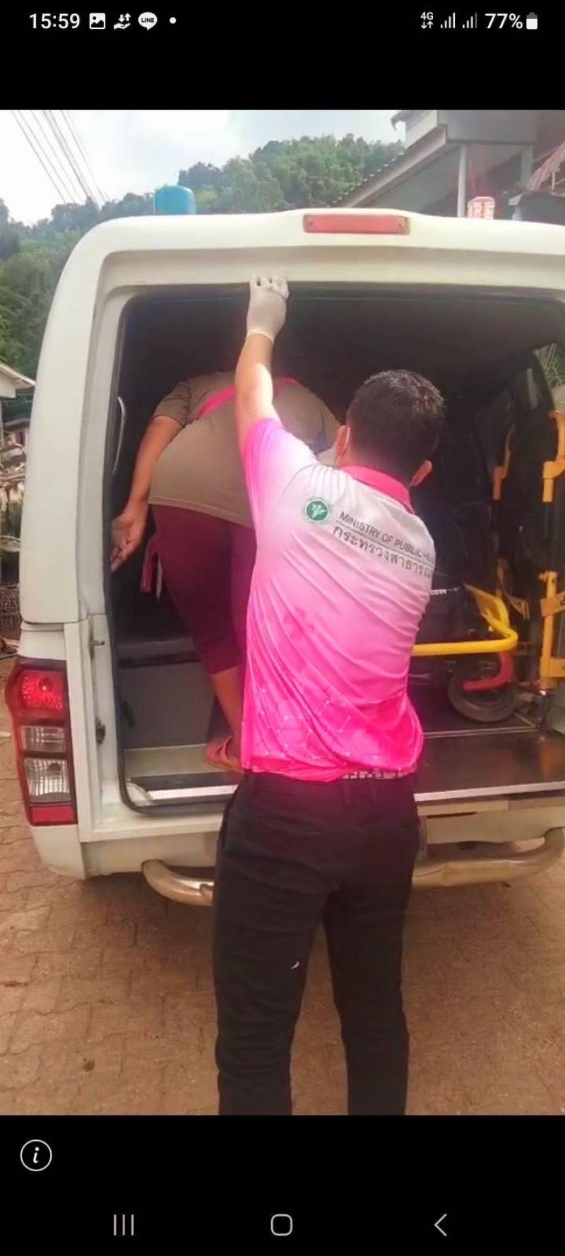 ทีมงานกู้ชีพออกช่วยเหลือผู้ป่วยมีอาการหายใจเหนื่อยบ้านผาเดื่อ