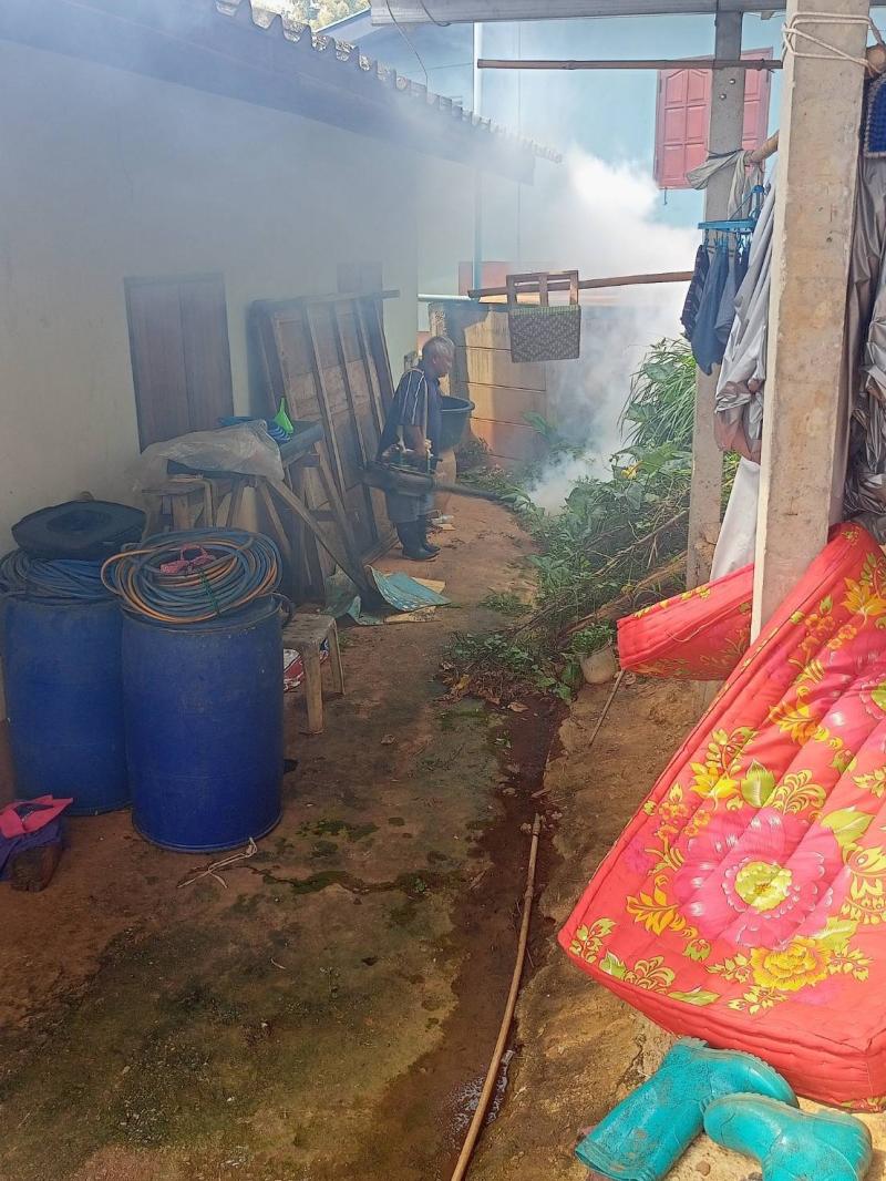 ฝ่ายบริหารงานสาธารณสุขลงพื้นที่ออกสำรวจแหล่งเพาะพันธ์ุลูกน้ำยุงลายพร้อมทั้งพ่นสารเคมีกำจัดยุงลายบ้านสามแยกและบ้านผาเดื่อ(ครั้งที่ 2)