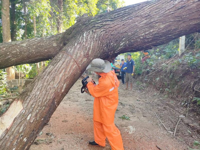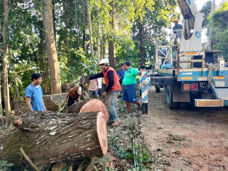 เจ้าหน้าที่ป้องกันฯ ลงพื้นที่ตัดกิ่งไม้ใหญ่ที่ล้มทับกีดขวางการจราจร และอาจเป็นอันตรายต่อประชาชนบริเวณบ้านแสนใจ (อาโย๊ะ)