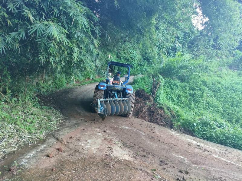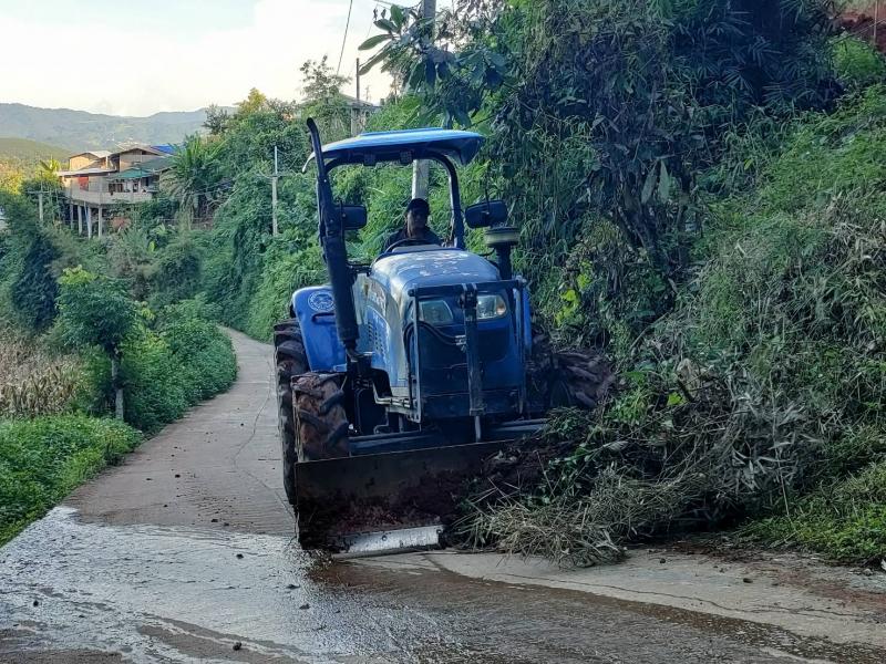 ทีมงานป้องกันและบรรเทาสาธารณภัยองค์การบริหารส่วนตำบลแม่สลองในลงพื้นที่ปรับดินสไลด์สไลด์ลงมาบริเวณถนนกีดขวางการจราจรบริเวณบ้านหินคำ (หมู่ที่ 27)