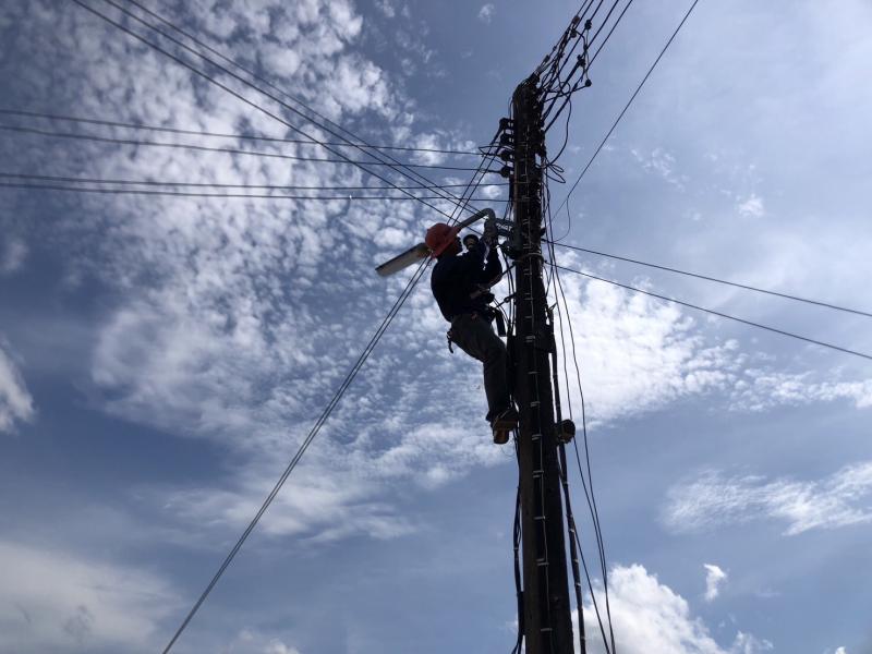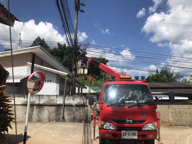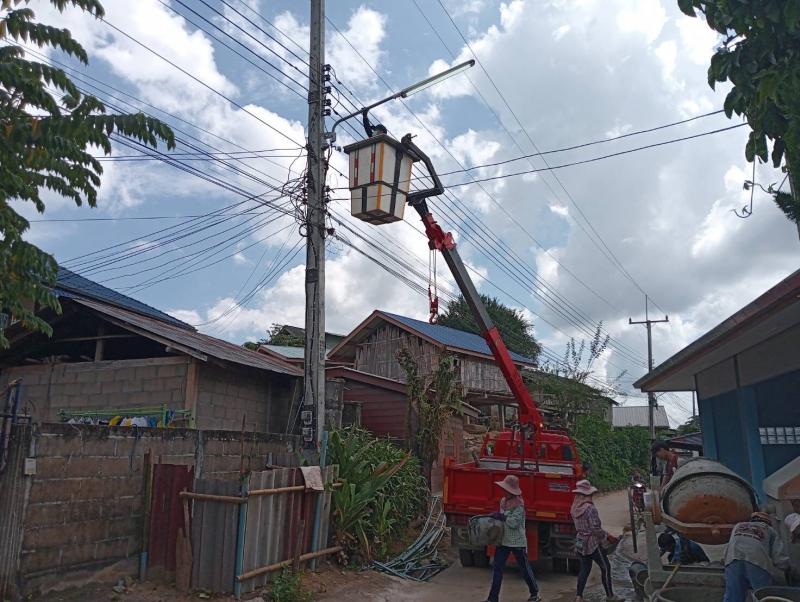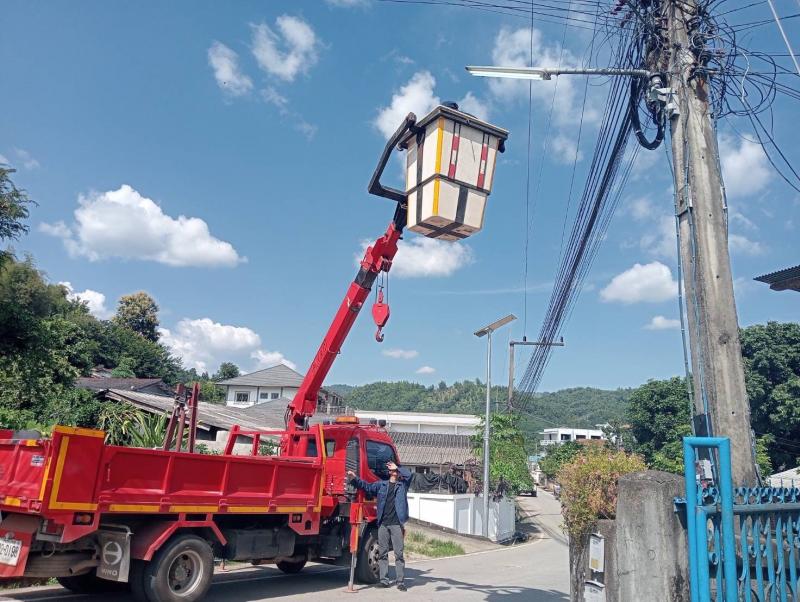 กองช่าง ออกปฏิบัติหน้าที่ซ่อมแซมโคมไฟกิ่งสาธารณะ บริเวณบ้านหินคำ หมู่ที่ 27