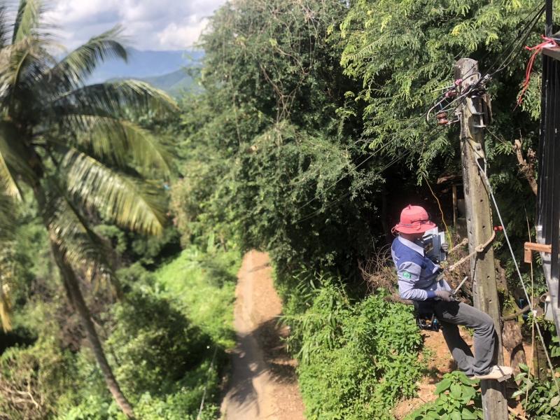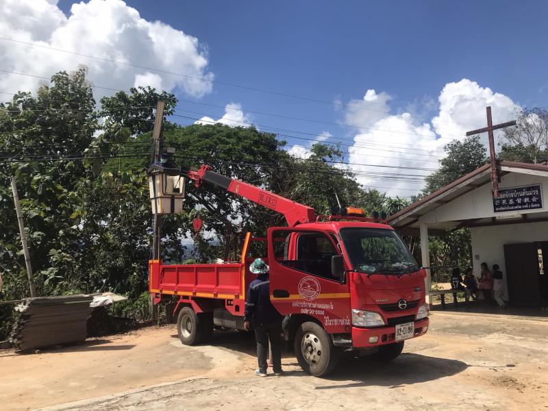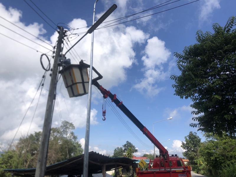 ช่างไฟออกซ่อมแซมไฟสาธารณะบ้านต้นม่วง