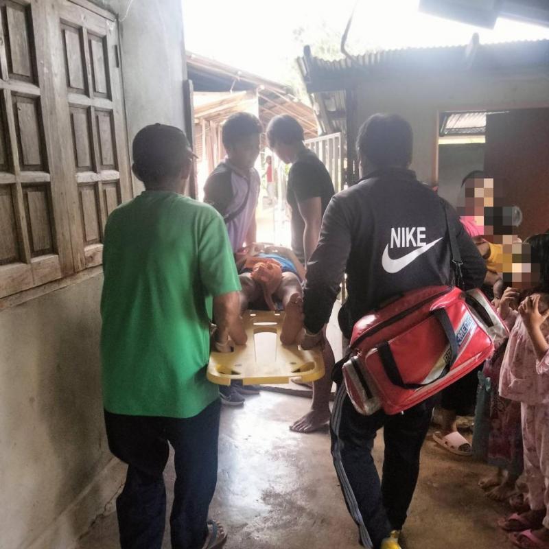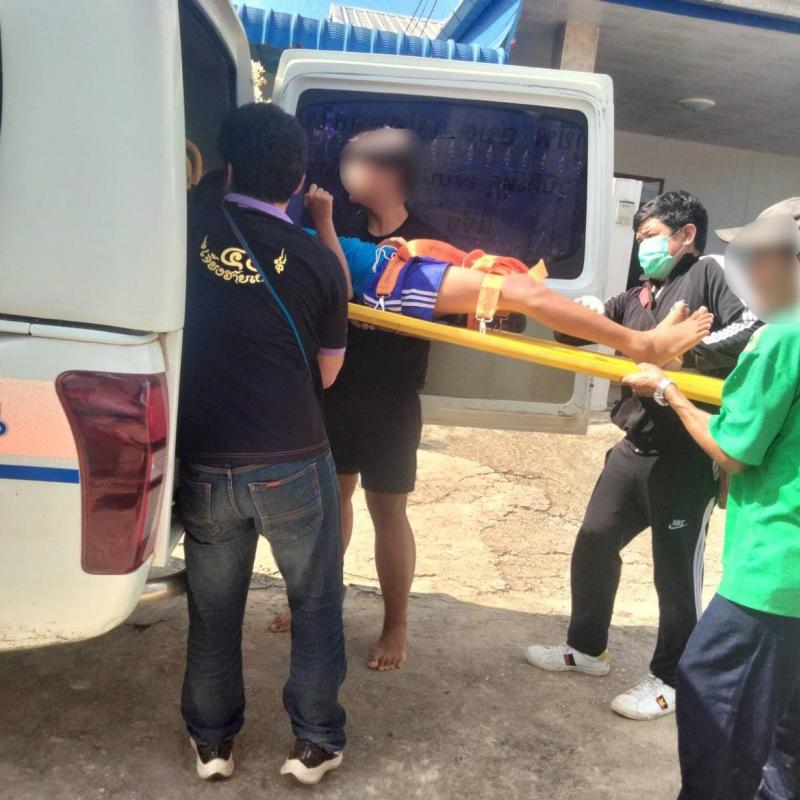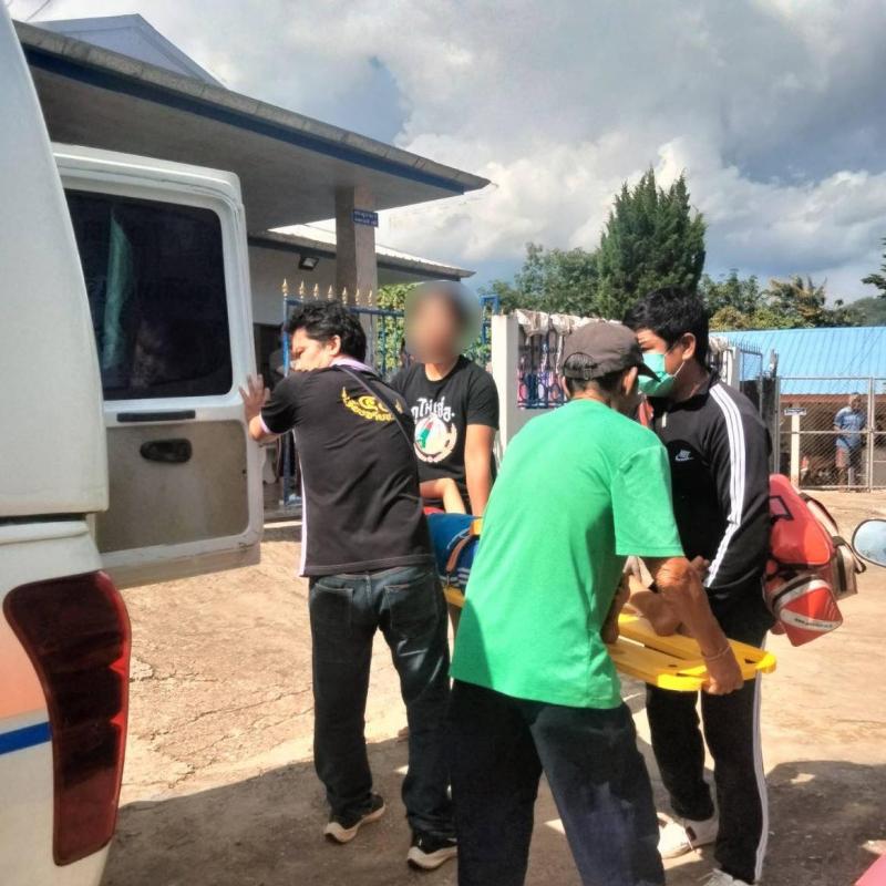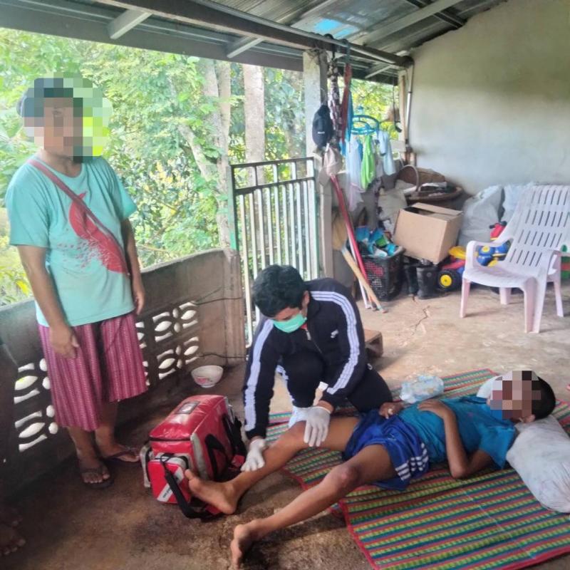 งานกู้ชีพออกเคสรับผู้ป่วยมีอาการบาดเจ็บที่ขา (ล้มเอง) ที่บ้านห้วยผึ้ง