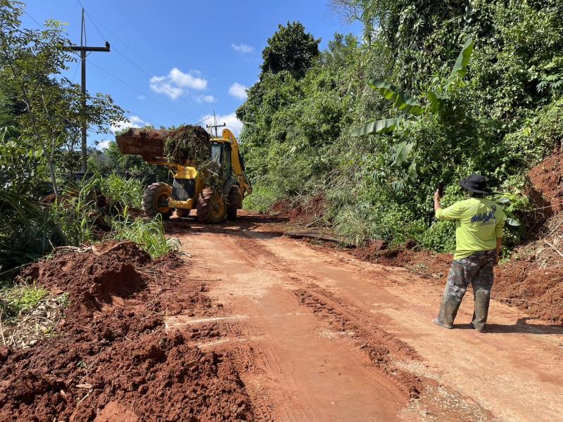 เจ้าหน้าที่ พร้อมคนขับ JCB ลงพื้นที่ปรับถนนเนื่องจากดินสไลด์ลงมาปิดทับเส้นทางสัญจรของพี่น้องประชาชน บริเวณทางเข้าหมู่บ้านมอล่อง (หมู่ที่ 25)