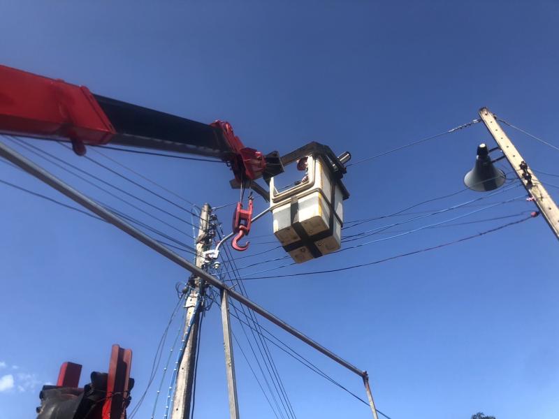 ทีมงานกองช่างออกปฏิบัติหน้าที่ติดตั้งป้ายพระบรมฉายาลักษณ์ในหลวงและพระราชินี บริเวณบ้านจะคำน้อย และซ่อมแซมโคมไฟกิ่งสาธารณะ (หมู่ 13) บ้านต้นม่วง