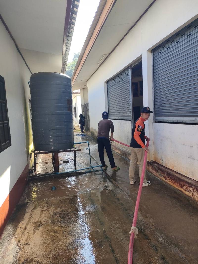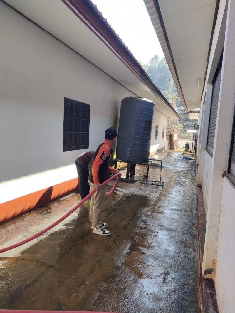 วันที่ 27 ธันวาคม 2566 เวลา 13.00 น ทีมงานป้องกันและบรรเทาสาธารณภัยองค์การบริหารส่วนตำบลแม่สลองใน ออกปฏิบัติหน้าที่ตามหนังสือขอความช่วยเหลือฯ เนื่องจากมีงานกีฬากลุ่มของโรงเรียน จึงขอความอนุเคราะห์รถน้ำล้างทำความสะอาดบริเวณทางเดินและห้องน้ำข้างห้องประชุม บ้านห้วยมุ (หมู่ที่ 5) เพื่อป้องกันเด็กนักเรียนเกิดอุบัติเหตุ ขณะนี้เจ้าหน้าที่ได้ปฏิบัติหน้าที่เสร็จเรียบร้อยแล้ว