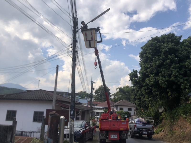 ทีมงานกองช่าง ออกซ่อมแซมไฟกิ่งสาธารณะ (หมู่ที่ 2 ) บ้านห้วยผึ้ง