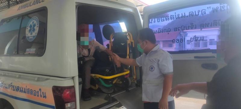 เจ้าหน้าที่กู้ชีพให้ออกบริการรับ - ส่ง ผู้ป่วยบ้านเล่าลิ่ว (หมู่ที่ 14 ) ส่งรักษาที่โรงพยาบาลแม่ฟ้าหลวง