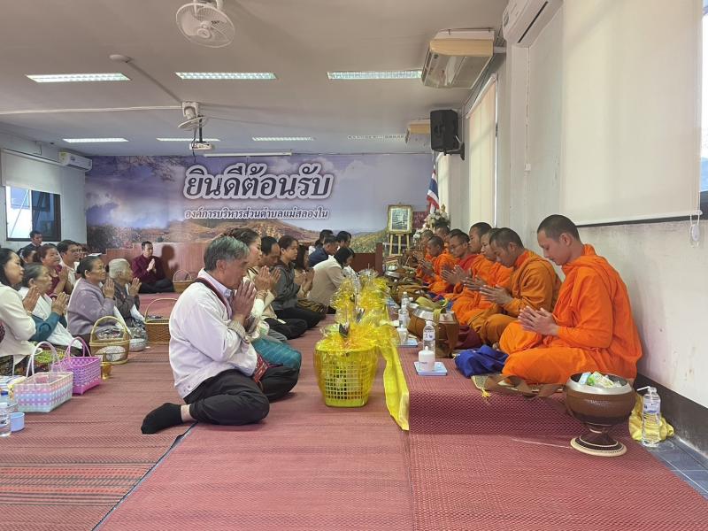ในวันที่ 6 กุมภาพันธ์ 2567 องค์การบริหารส่วนตำบลแม่สลองใน นำโดย นายจิระศักดิ์ กมลจิตร รองปลัดองค์การบริหารส่วนตำบล รักษาราชการแทน ปลัดองค์การบริหารส่วนตำบล รักษาราชการแทน นายกองค์การบริหารส่วนตำบลแม่สลองใน พร้อมด้วยท่าน สจ.ธรณินทร์ เบ็ญชา หัวหน้าส่วนราชการ สมาชิกสภาฯ ครู ผดด. และเจ้าหน้าที่ องค์การบริหารส่วนตำบลแม่สลองใน ร่วมทำบุญตักบาตรข้าวสาร อาหารแห้ง ถวายสังฆทานและเจริญพุทธมนต์ ทำบุญถวายภัตตาหารเพลแด่พระสงฆ์ เพื่อเป็นสิริมงคล ให้เป็นปีมงคลตลอดปี ณ สำนักงานองค์การบริหารส่วนตำบลแม่สลองใน