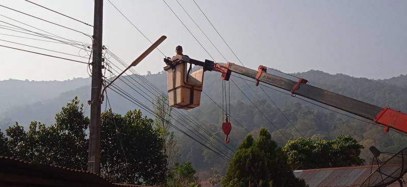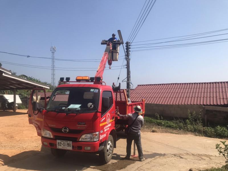 ทีมงานกองช่าง ออกปฏิบัติหน้าที่ ซ่อมแซมโคมไฟกิ่งสาธารณะ บ้านหัวแม่คำ