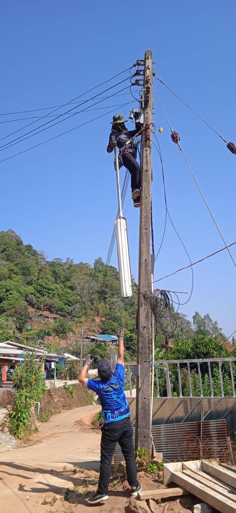 วันพุธที่ 7 กุมภาพันธ์ 2567 ทีมงานกองช่าง องค์การบริหารส่วนตำบลแม่สลองใน ได้ออกปฏิบัติหน้าที่ ซ่อมแซมโคมไฟกิ่งสาธารณะ บ้านหัวแม่คำ หมู่ที่ 4