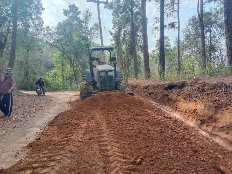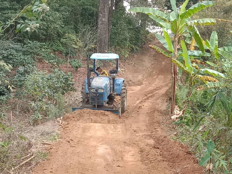 งานป้องกันฯ ลงพื้นที่ปรับถนนทางเข้าหมู่บ้านและทางเข้าการเกษตร (หมู่ที่ 18) บ้านห้วยหมาก