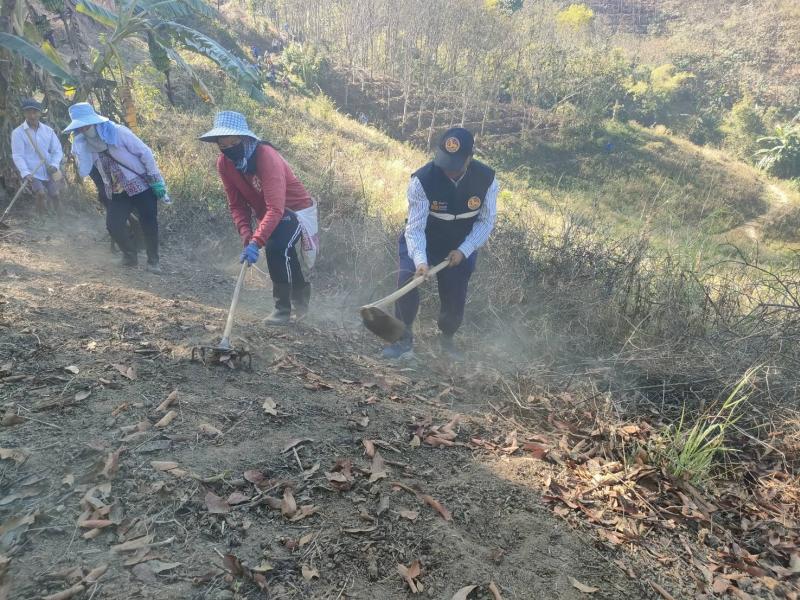 งานป้องกันฯ จัดทำแนวกันไฟ ตามโครงการป้องกันและแก้ไขปัญหาไฟป่า หมอกควัน ณ บ้านเล่าลิ่ว (หมู่ที่ 14)