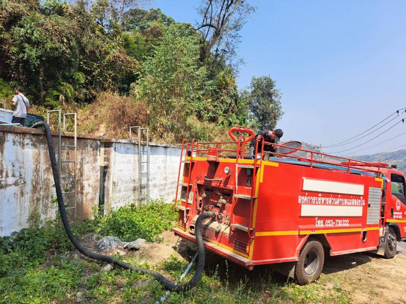 งานป้องกันฯ ออกบริการส่งน้ำอุปโภค-บริโภค ให้กับโรงเรียนบ้านผาเดื่อ (หมู่ที่ 6)