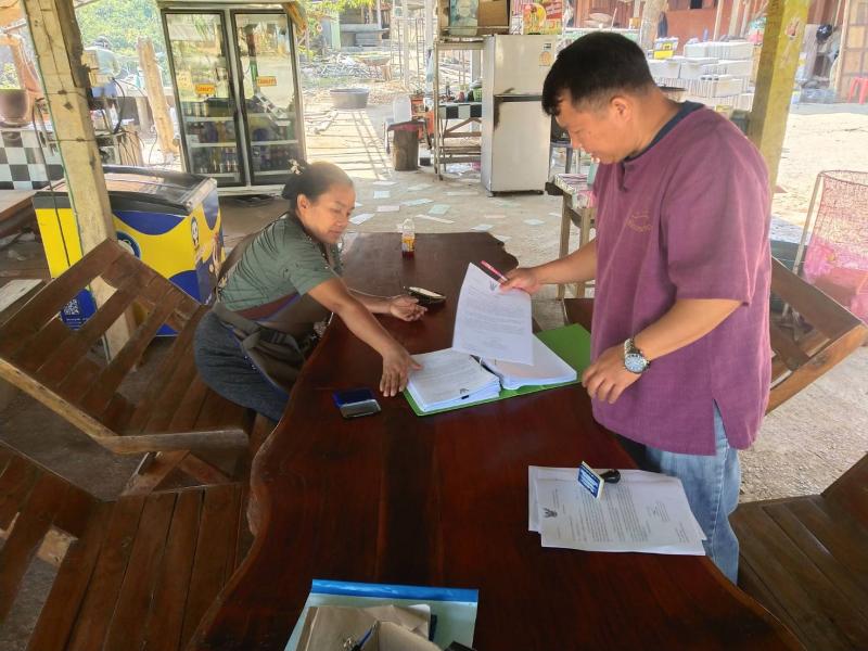 งานจัดเก็บรายได้ ลงพื้นที่ส่งเอกสารภาษีที่ดินและสิ่งปลูกสร้าง และทำการเก็บภาษีป้าย ประจำปี 2567 (บ้านอาโยะ) บ้านแสนใจ หมู่ที่ 7