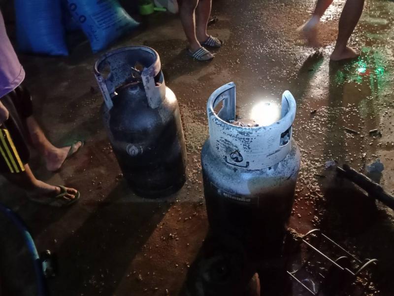 งานป้องกันฯ นำรถบรรทุกน้ำไปช่วยระงับเหตุ ไฟไหม้โรงครัว บ้านมะหินกอง