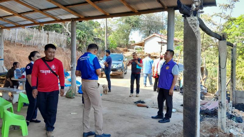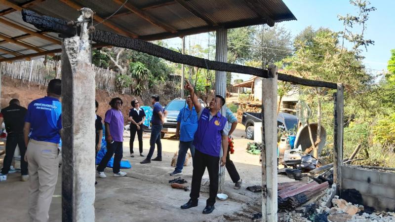 นายอภิชาติ ศรีสุวรรณ์ นายอำเภอแม่ฟ้าหลวง พร้อมด้วยกิ่งกาชาดอำเภอแม่ฟ้าหลวง และกำนันตำบลแม่สลองใน มอบของช่วยเหลือให้กับนายอาถู่ แซ่ดู่ กรณีไฟไหม้โรงครัว