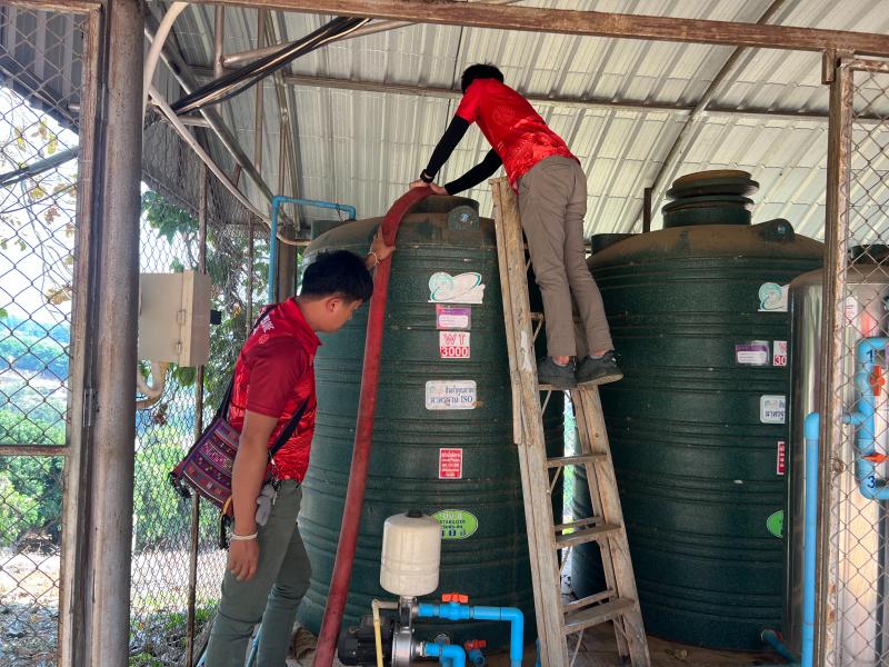 งานป้องกันฯ ออกบริการส่งน้ำอุปโภคบริโภค ให้กับโรงเรียนบ้านผาเดื่อ (หมู่ที่ 6)