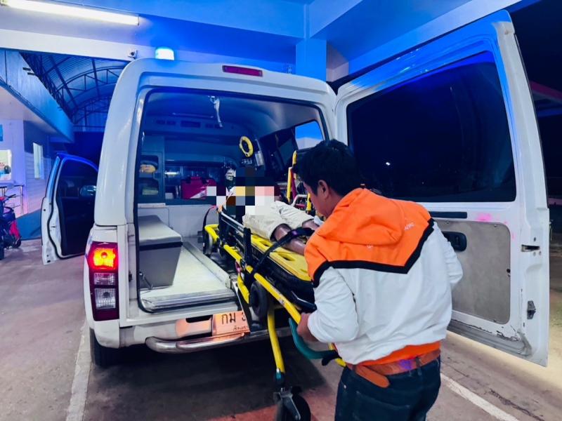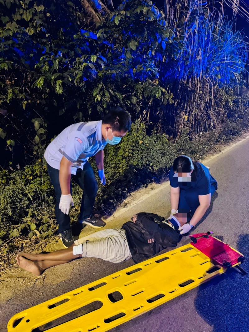 งานกู้ชีพ ออกช่วยเหลือผู้ป่วยประสบอุบัติเหตุ รถจักรยานยนต์ล้ม ที่บ้านหินคำ (หมู่ที่ 27)