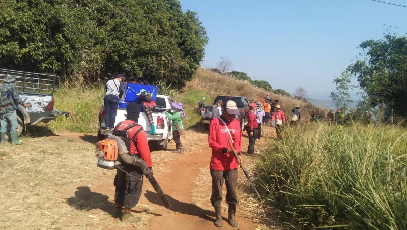 อาสาสมัครท้องถิ่นรักษ์โลก พร้อมด้วยชาวบ้านแสนใจ ร่วมกันลาดตะเวนไฟป่า และทำแนวกันไฟ