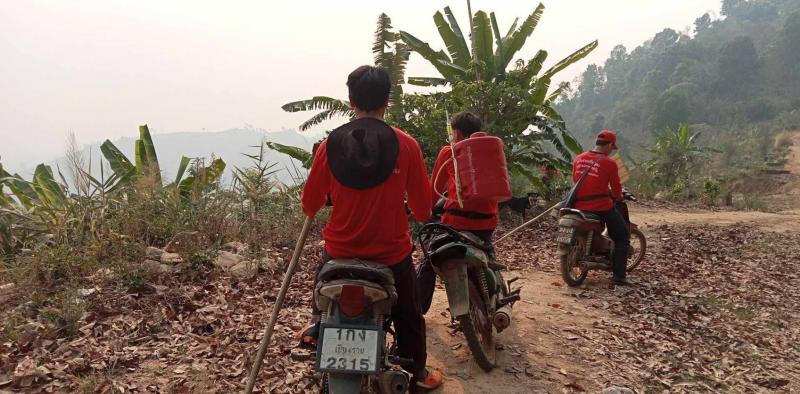 ชาวบ้าน บ้านสามสูง หมู่ที่ 28 พร้อมด้วยอาสาสมัครท้องถิ่นรักษ์โลก ร่วมกันลาดตะเวนไฟป่า และทำแนวกันไฟ
