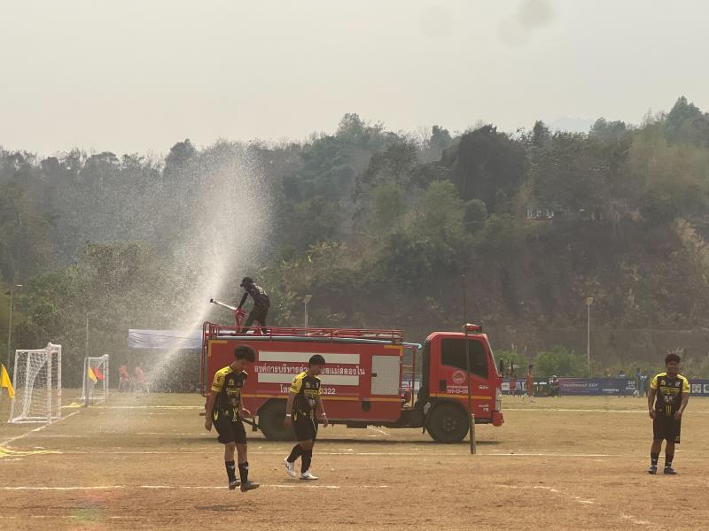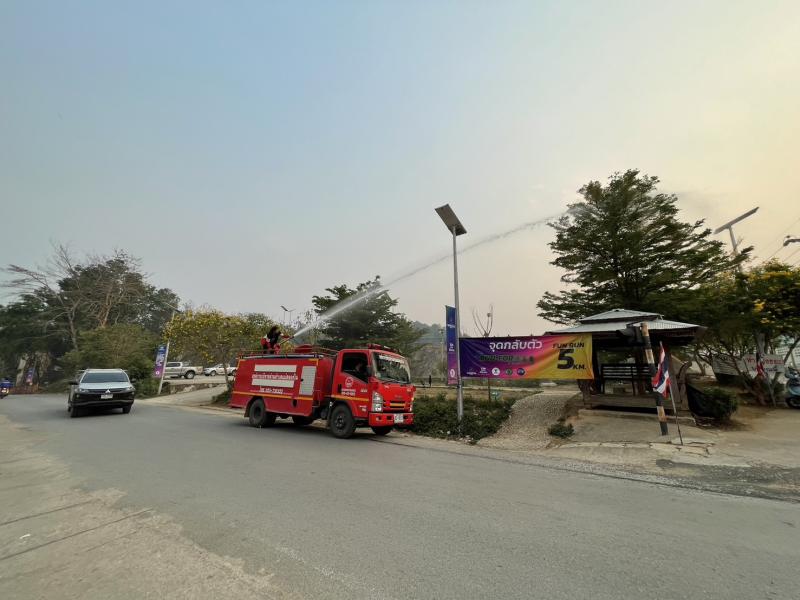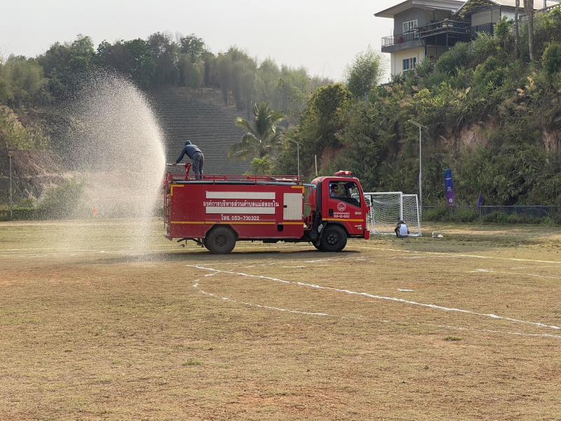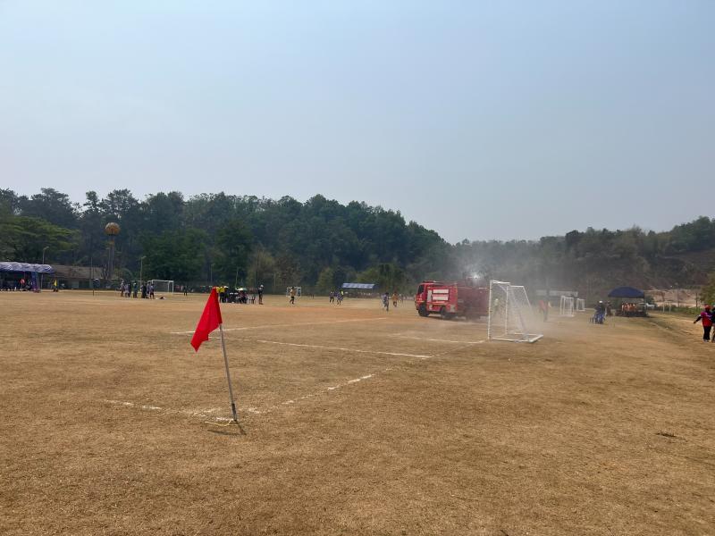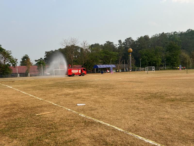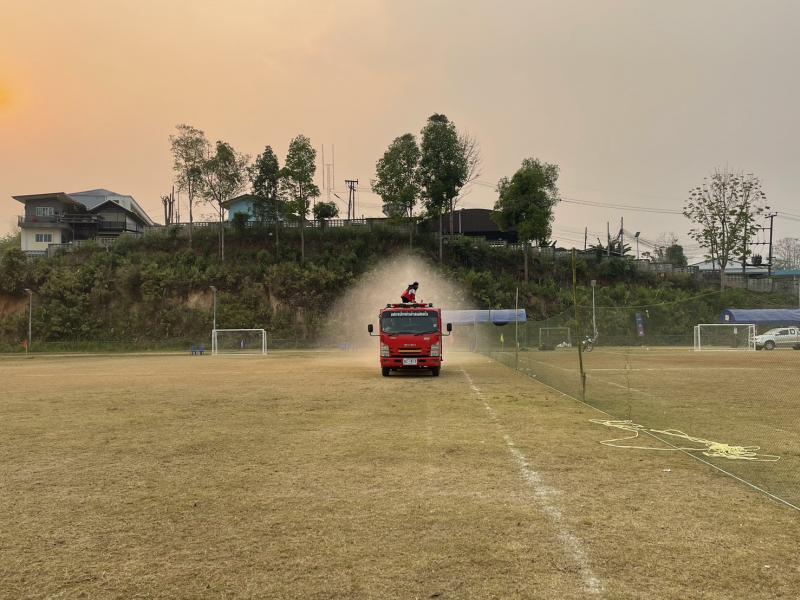 งานป้องกันฯ ออกปฏิบัติหน้าที่ รดน้ำที่สนามกีฬากลาง ตำบลแม่สลองใน เพื่ออำนวยความสะดวกให้กับนักกีฬาที่จะทำการแข่งขันกีฬา 329 และลดฝุ่น pm 2.5 และหมอกควัน