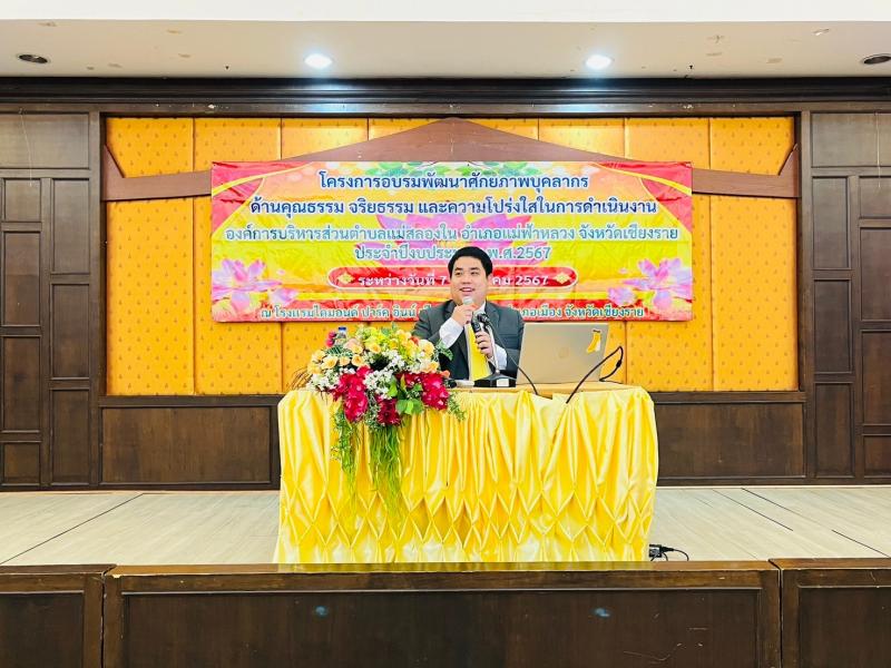 วันที่ 7-8 มีนาคม 2567 งานการเจ้าหน้าที่ สำนักปลัดองค์การบริหารส่วนตำบลแม่สลองใน อำเภอแม่ฟ้าหลวง จังหวัดเชียงราย จัดโครงการอบรมพัฒนาศักยภาพบุคลากรด้านคุณธรรม จริยธรรม และความโปร่งใสในการดำเนินงาน (พนักงานส่วนตำบล พนักงานครูและบุคลากรทางการศึกษา และพนักงานจ้าง) ประจำปีงบประมาณ พ.ศ. ๒๕๖๗ ณ โรงแรมไดมอนด์ ปาร์ค อินน์ เชียงราย รีสอร์ท อำเภอเมือง จังหวัดเชียงราย เพื่อส่งเสริมให้ พนักงานส่วนตำบล พนักงานครูองค์การบริหารส่วนตำบล และพนักงานจ้างขององค์การบริหารส่วนตำบลแม่สลองใน ได้มีความรู้ ความเข้าใจด้านวินัย คุณธรรม จริยธรรมและจรรยาของข้าราชการที่บัญญัติไว้เป็นข้อกฎหมาย กฎ ระเบียบ เห็นความสำคัญและเสริมสร้างภาพลักษณ์ของหน่วยงานให้มีความโปร่งใส และเป็นธรรม