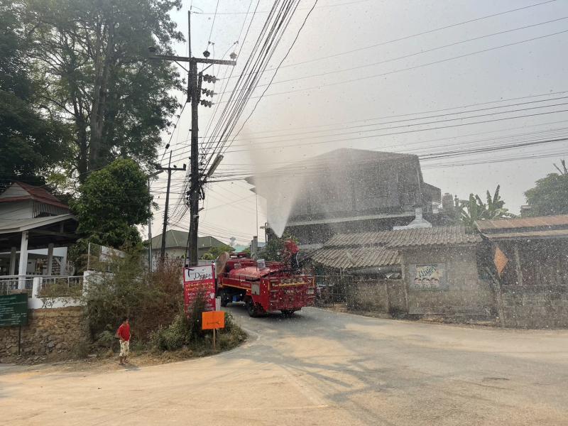 วันที่ 3 เมษายน 2567 เวลา 09:00 น. งานป้องกันและบรรเทาสาธารณภัย อบต.แม่สลองใน ดำเนินการพ่นละอองน้ำในอากาศ ปริมาณ 4,500 ลิตร เพื่อเพิ่มความชื้นในอากาศและลดฝุ่นละอองขนาดเล็ก PM 2.5 ในพื้นที่