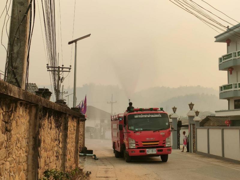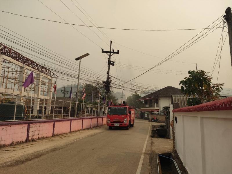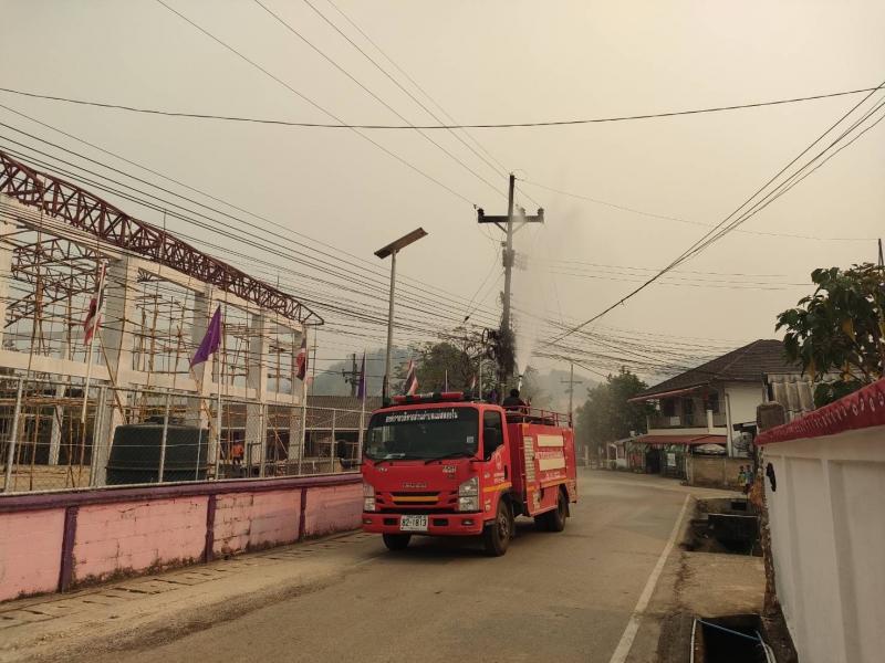 วันที่ 6 เมษายน 2567 งานป้องกันและบรรเทาสาธารณภัย อบต.แม่สลองใน ดำเนินการพ่นละอองน้ำในอากาศ ปริมาณ 4,500 ลิตร เพื่อเพิ่มความชื้นในอากาศ และลดฝุ่นละอองขนาดเล็ก PM 2.5 ในพื้นที่