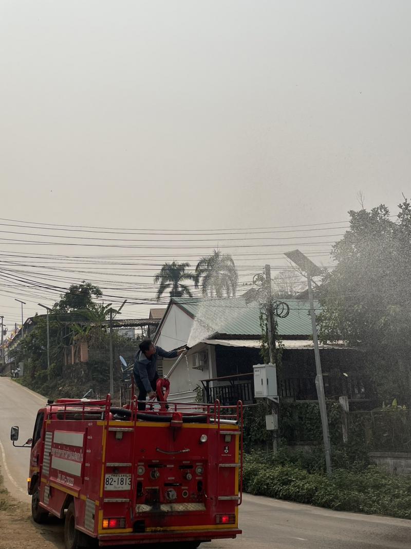 งานป้องกันฯดำเนินการพ่นละอองน้ำในอากาศ ปริมาณ 4,500 ลิตร เพื่อเพิ่มความชื้นในอากาศ และลดฝุ่นละอองขนาดเล็ก PM 2.5 ในพื้นที่