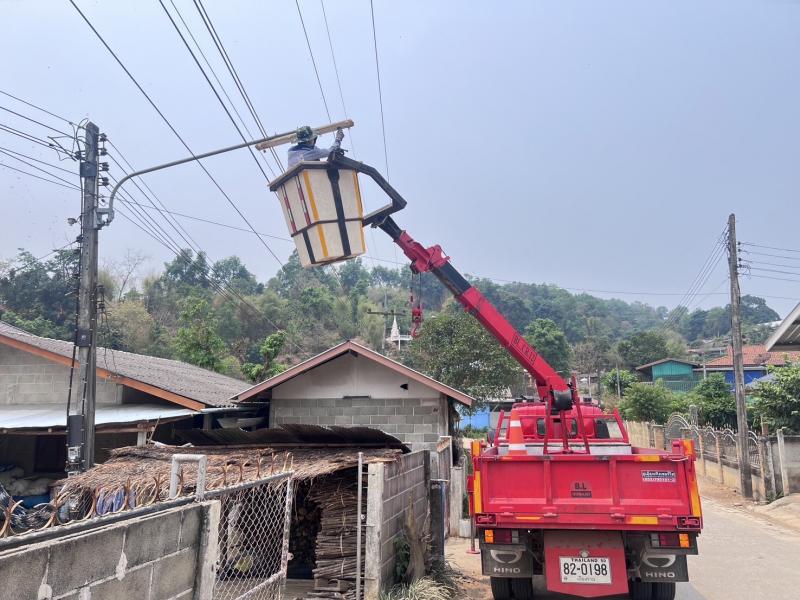 เจ้าหน้าที่กองช่างฯ ได้ออกปฏิบัติหน้าที่ ซ่อมแซมไฟกิ่งสาธารณะ (หมู่ที่ 20) บ้านนาโต่