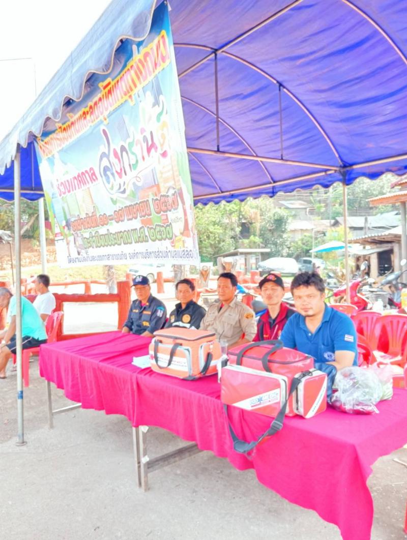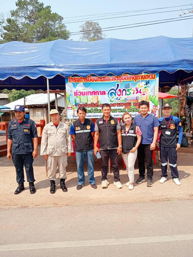 งานป้องกันและงานสาธารณสุข ออกปฏิบัติหน้าที่ ตั้งจุดบริการประชาชนช่วงเทศกาลสงกรานต์ ประจำปีงบประมาณ 2567 ณ บ้านสามแยก (หมู่ที่ 24)