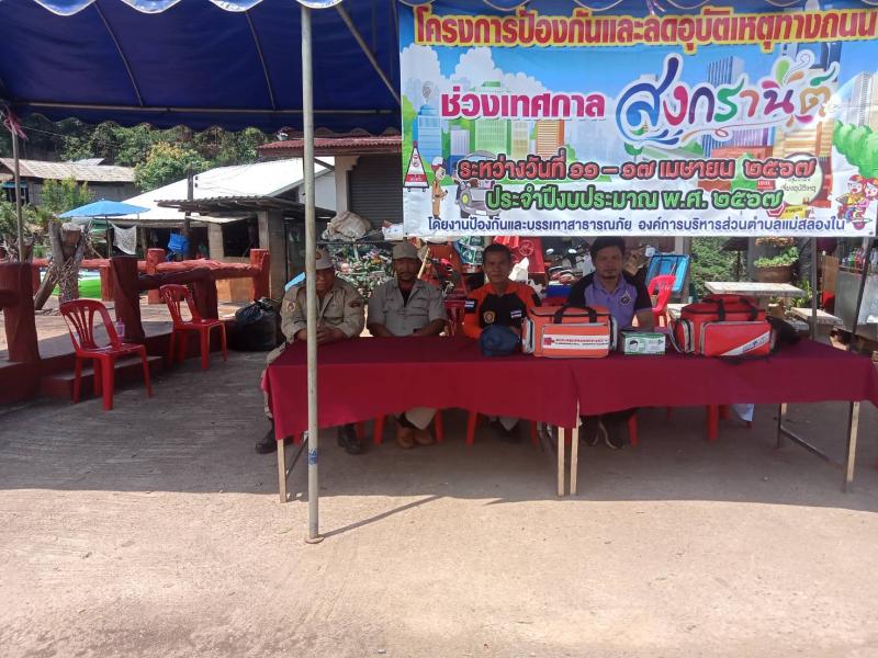 วันที่ 16 - 17 เมษายน 2567 งานป้องกันและบรรเทาสาธารณภัย และงานสาธารณสุข อบต.แม่สลองใน ร่วมกับทุกภาคส่วน ออกปฏิบัติหน้าที่ ตั้งจุดบริการประชาชนช่วงเทศกาลสงกรานต์ ประจำปีงบประมาณ 2567 โดยในวันที่ 16 เมษายน 2567 เวลา 14.00 น. ท่านปลัดเสรี นุ่มประไพ ออกตรวจเยี่ยมจุดบริการประชาชน พร้อมทั้งมอบเครื่องดื่ม เป็นกำลังใจให้กับ จนท. ณ จุดตรวจบริการ บ้านสามแยก (หมู่ที่ 24) ตำบลแม่สลองใน