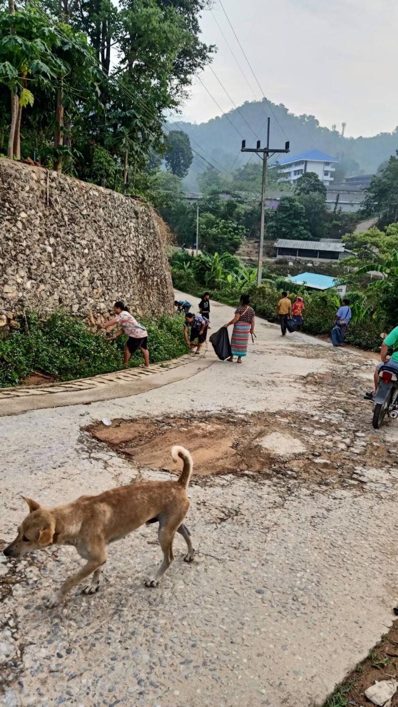 วันที่ 18 พฤษภาคม 2567 ผู้ใหญ่ ผู้ช่วยผู้ใหญ่บ้าน พร้อมด้วยอาสาสมัครท้องถิ่นรักษ์โลก ได้นำชาวบ้านร่วมกันพัฒนาทางเข้าหมู่บ้านและได้เก็บขยะทางเข้าหมู่บ้านและตัดหญ้าสองข้างทาง ณ บ้านสันมะเค็ด หมู่ที่ 23 ต.แม่สลองใน อ.แม่ฟ้าหลวง จ.เชียงราย
