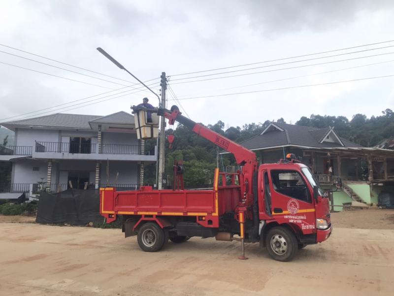 เจ้าหน้าที่กองช่างองค์การบริหารส่วนตำบลแม่สลองใน ได้ออกปฏิบัติหน้าที่ซ่อมแซมโคมไฟกิ่งสาธารณะ บ้านห้วยส้าน (หมู่ที่ 8)