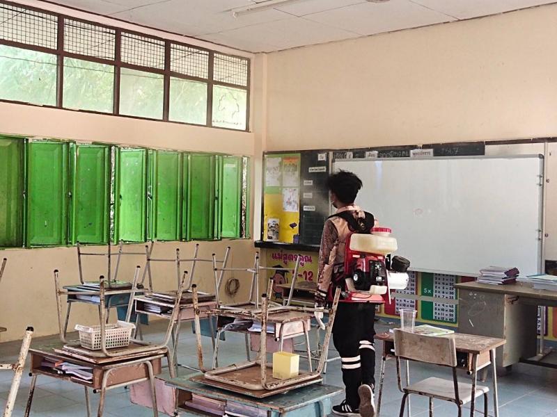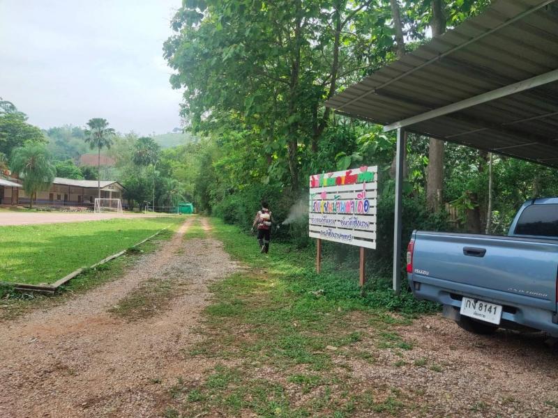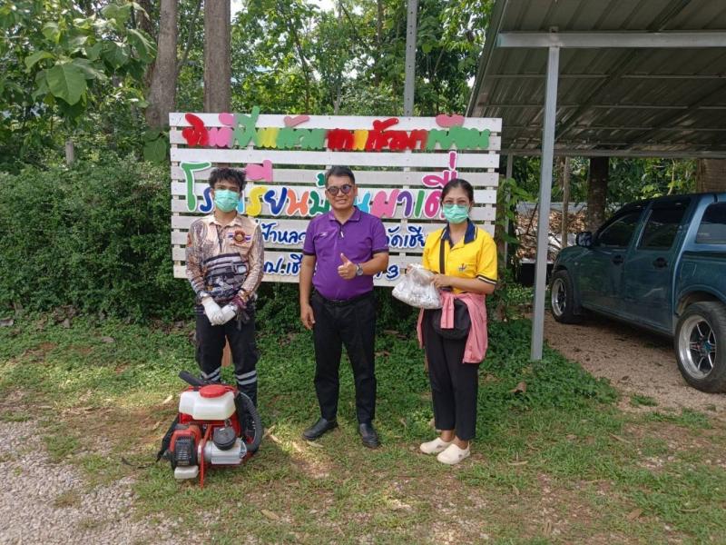 ฝ่ายบริหารงานสาธารณสุข ออกไปพ่นยาเคมีกำจัดยุงลาย ณ โรงเรียนบ้านผาเดื่อ