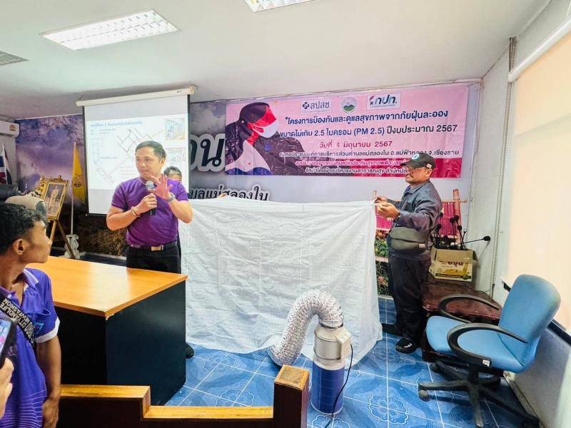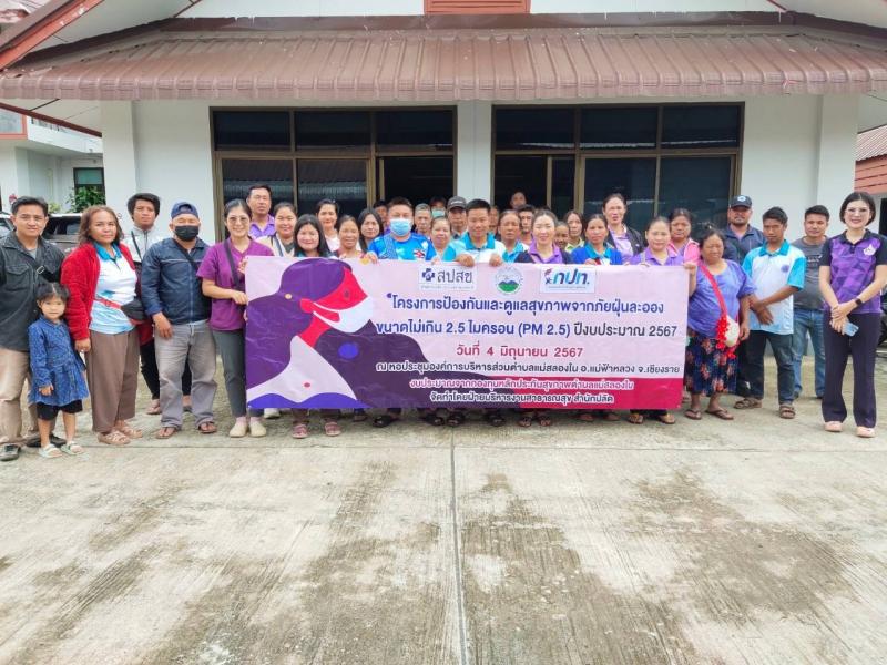 วันที่ 4 มิถุนายน 2567 ฝ่ายบริหารงานสาธารณสุข องค์การบริหารส่วนตำบลแม่สลองใน จัดโครงการป้องกัน และดูแลสุขภาพจากภัยฝุ่นละอองขนาดไม่เกิน 2.5 ไมครอน (pm 2.5) จัดกิจกรรมอบรมให้ความรู้แก่ อสม. และผู้ดูและคนไข้ ในการทำ "มุ้งสู้ฝุ่น" ให้แก่ผู้ป่วย 3 กลุ่มโรค และผู้ป่วยติดเตียง ณ. หอประชุมองค์การบริหารส่วนตำบลแม่สลองใน